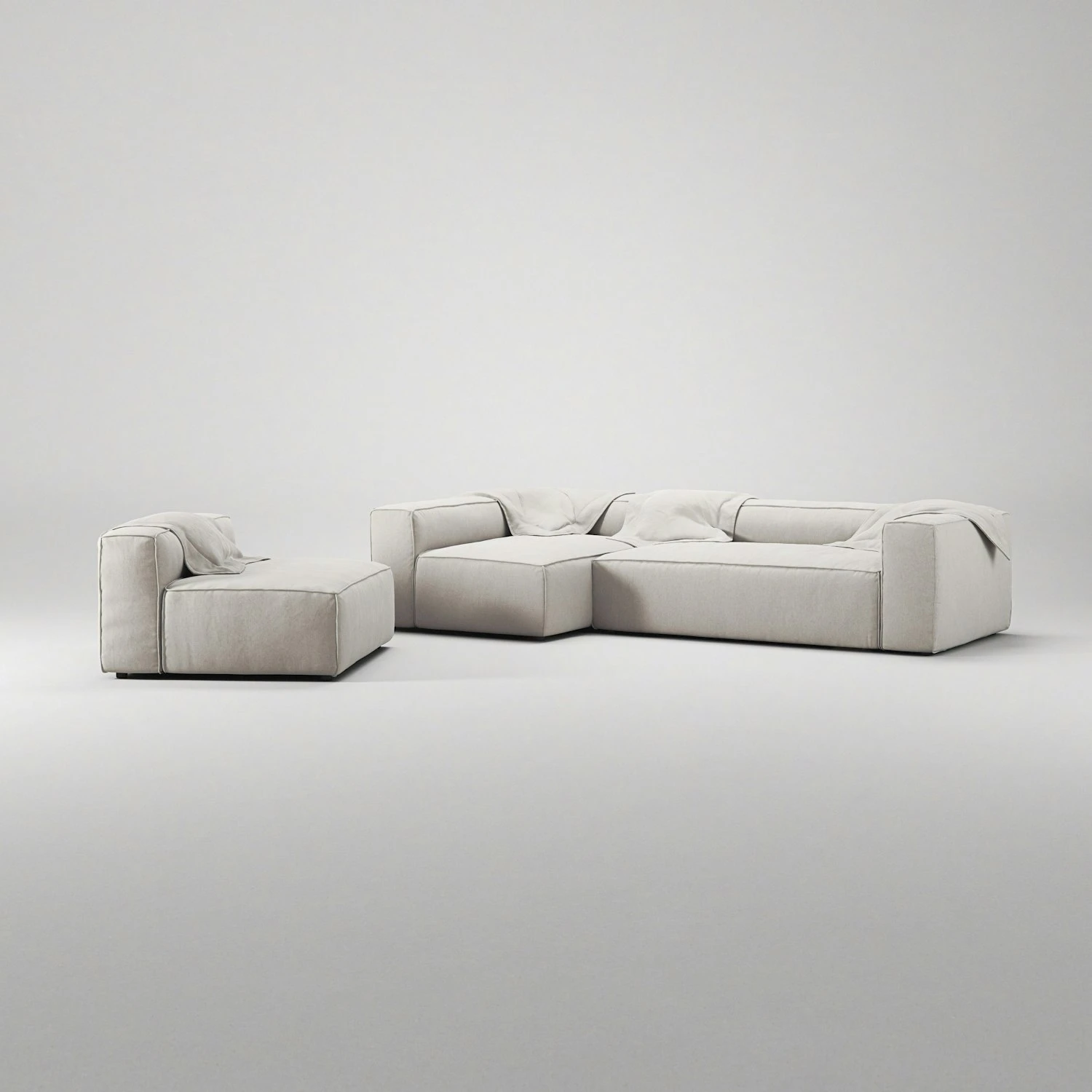 Grand 4-Sitzer-Sofa Liege Links Mit Sessel, Moon White